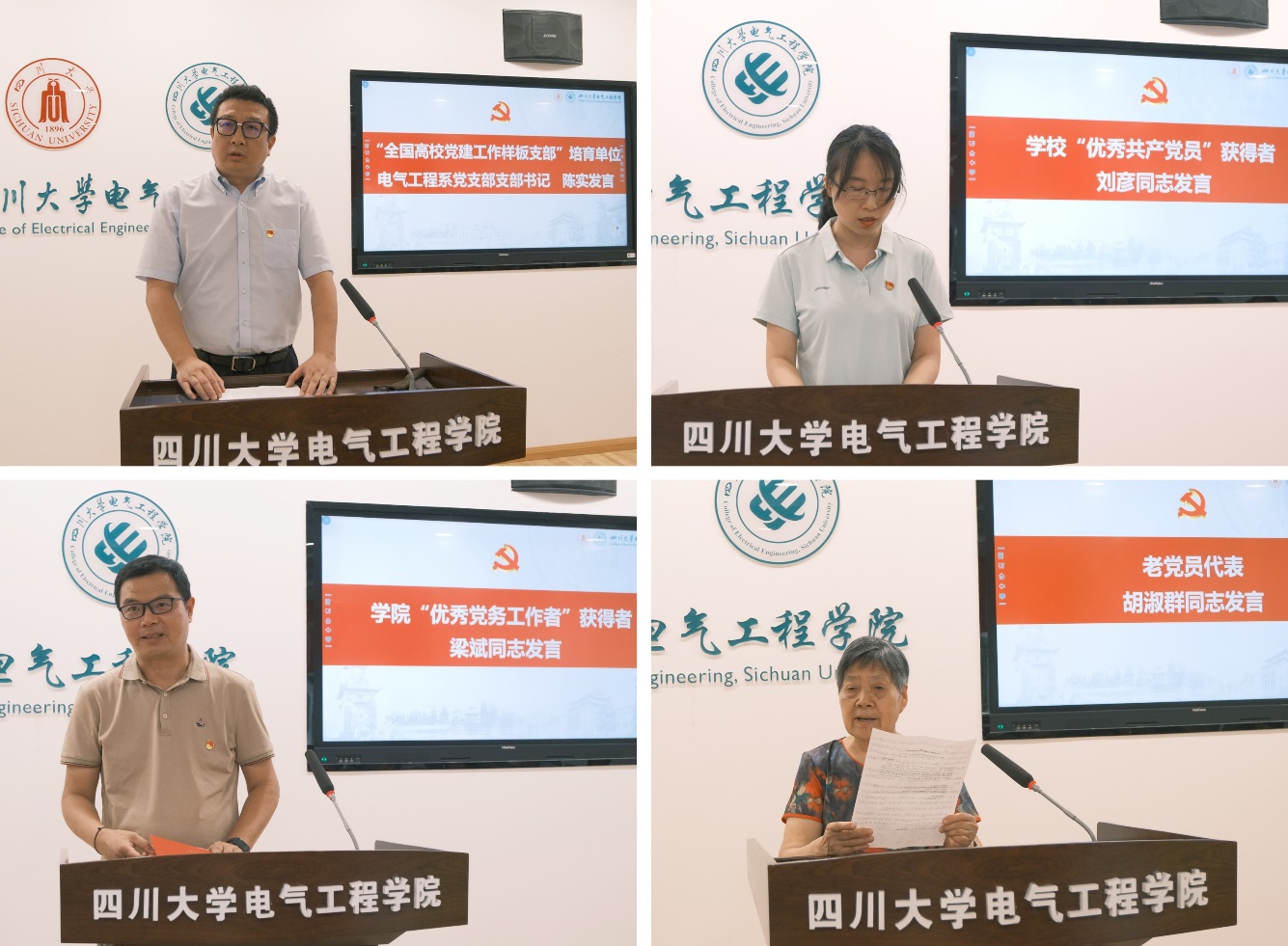 “全国高校党建工作样板支部”培育创建单位电气工程系党支部书记陈实同志,学校“三个一流”创建活动表彰对象、优秀共产党员自动化系党支部刘彦同志,学院“两优一先”表彰对象代表、优秀党务工作者梁斌同志,“光荣在党50年”老党员胡淑群同志分别发言。他们向党组织多年来的教育和培养表示诚挚感谢,并结合工作实际,分享了进一步加强党支部建设、着力做好党员教育管理、充分发挥党员先锋模范作用等方面的感悟和体会。